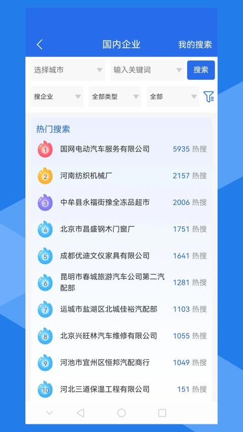 支持搜索企业,用户可随时在软件上搜索国内企业,了解相关信息。