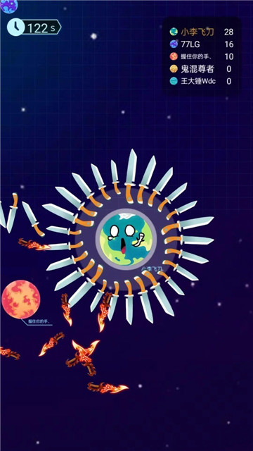 1、对着那些要接近你的圆刀不断地投掷,并且不要碰到阻碍物。