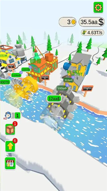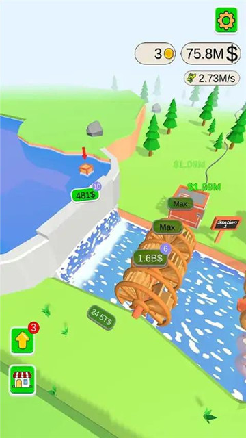 2、逐步运用水利进行发电,让自己赚到更多的钱,扩展自己的工厂。