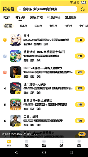 3、软件收录了众多热门游戏,包括破解游戏、免费游戏等众多类型,游戏品种丰富多样,数量庞大。