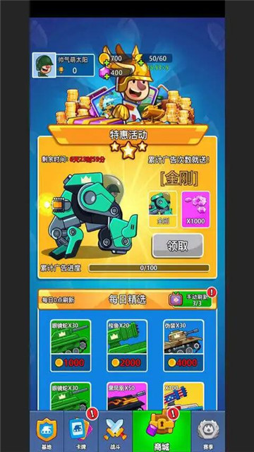 3、可以在游戏开始前,在游戏页面打开一个大礼包,用这笔钱来提升自己的战车。
