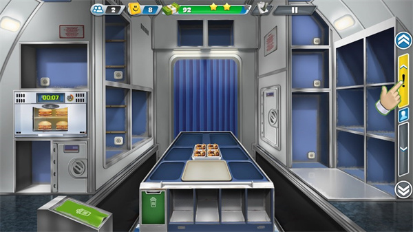 1、模拟真实厨房环境,高度还原了飞机上的厨房设施,玩家需要合理利用狭小空间中的各种设备。