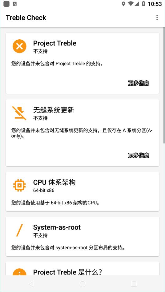 4、能快速识别并检测出是否支持Project Treble功能,会检查您的设备是否配置了A/B系统分区机制。