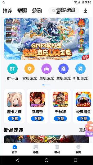 4、还有很多BT手游频道则汇聚了各种BT版和GM版福利手游,让用户能够体验到与众不同的土豪玩法。