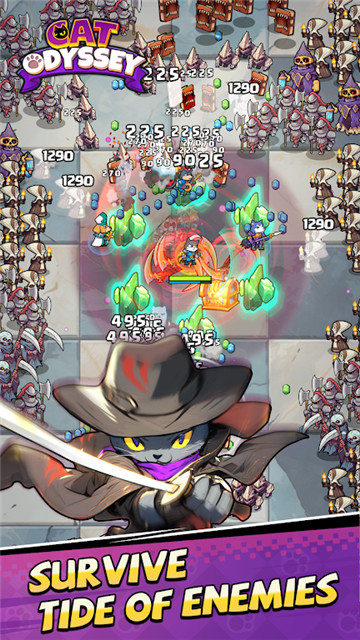 3、萌萌哒小猫图像与割草射击方式,为您提供一种崭新的游戏感受。