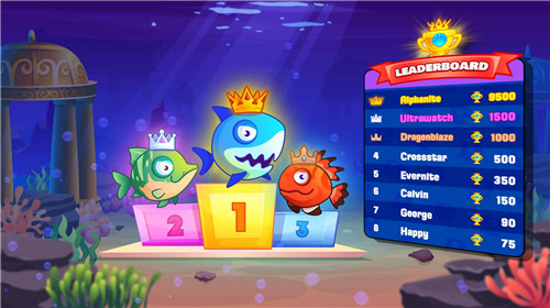 1、画面干净整洁,是一款触控式的游戏,轻轻一划就能轻松地操控鱼儿的动作。