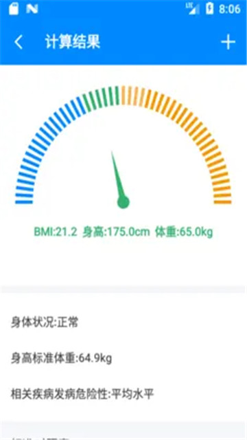 3、数据精密度高,使用了世界公认的体重指数的计算方法,保证了数据的准确性。