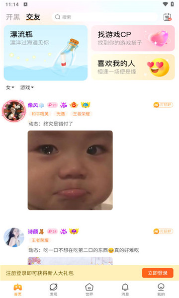 1、为年轻人建立的游戏社交平台,结识更多优秀的游戏大神。