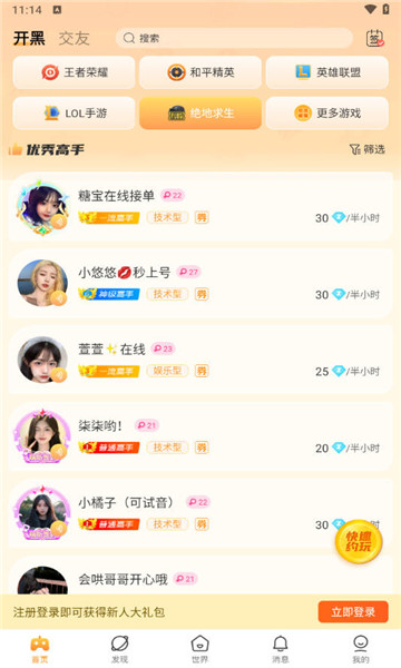 下载小鹿组队电竞陪玩是一个专门为电竞选手服务的平台,里面有很多著名的电竞高手。不管玩家要打哪款游戏,都可以叫好友来参与。也有不少声音好听,技术好,有耐心的高手,可以帮你轻松上分,让你变得更容易。
