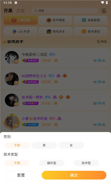 2、所有玩家的宝库,里面有很多不同的游戏类型的陪玩。