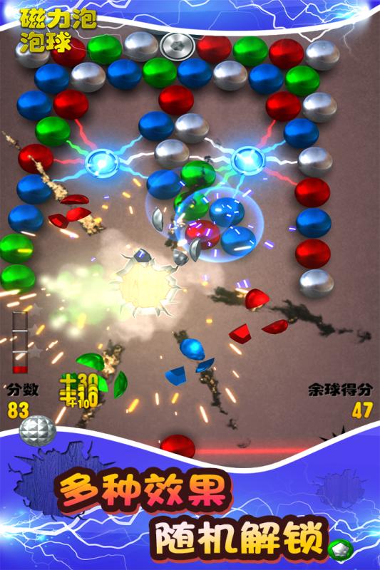 下载1、玩家可以操纵磁力圆球,去消除它们冲关,体验游戏的乐趣。