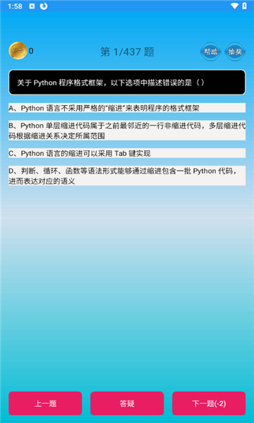 4、软件中还包含了各种编程的考试,让你更好的通过理论知识来了解。