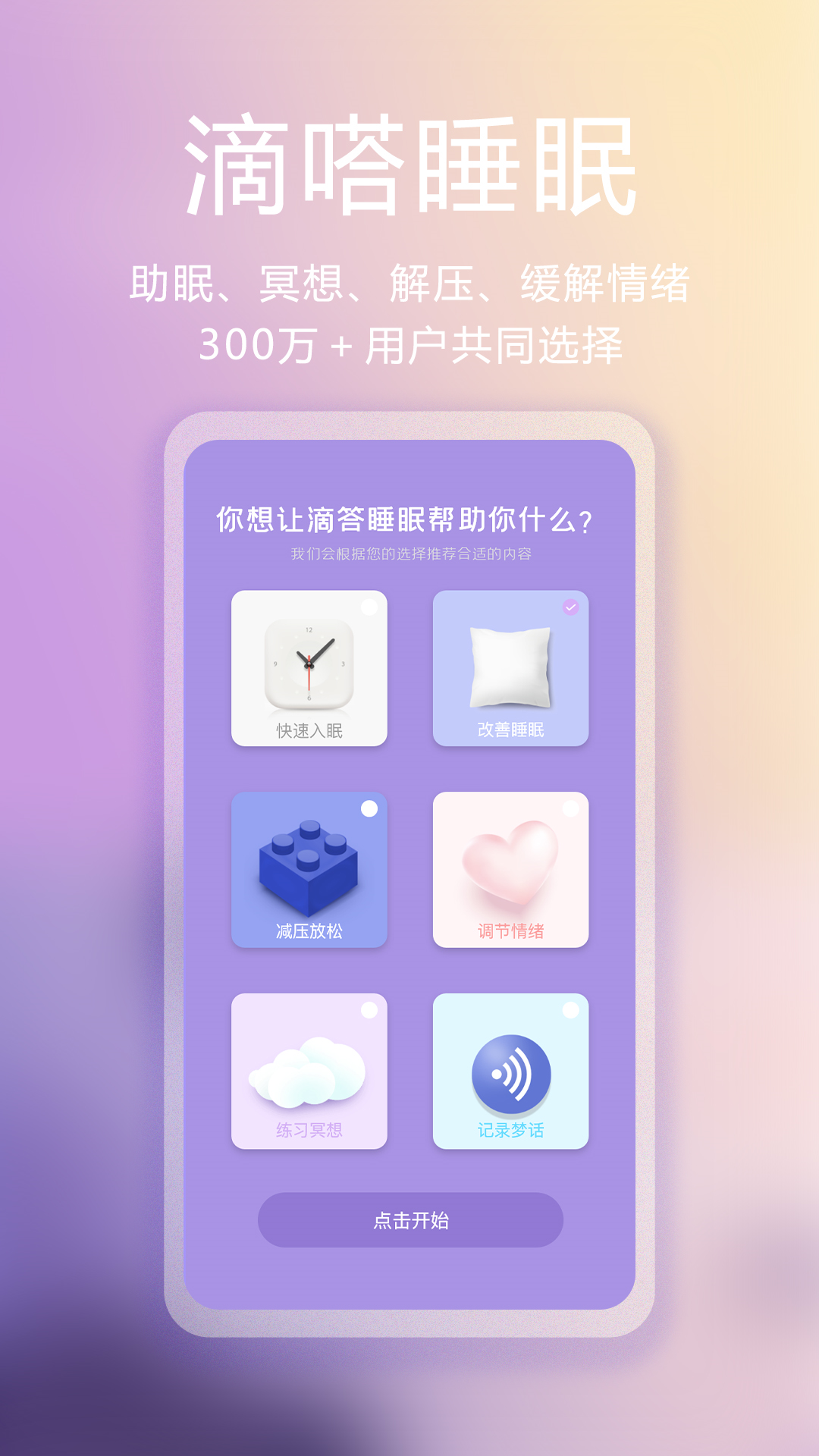 1.滴嗒睡眠基于严谨的睡眠科学理论,结合专业医学指导,为用户提供精准、有效的睡眠改善方案。