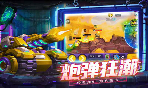 下载铁甲战队是一款横板策略对战手游,玩家在游戏中可以欣赏到非常有趣的投掷游戏玩法,可以非常专业地用抛物线来计算投掷,装备战术组合取得战略上的优势,利用风的方向和其他的因素,打中敌人或者破坏地形,战胜对手。