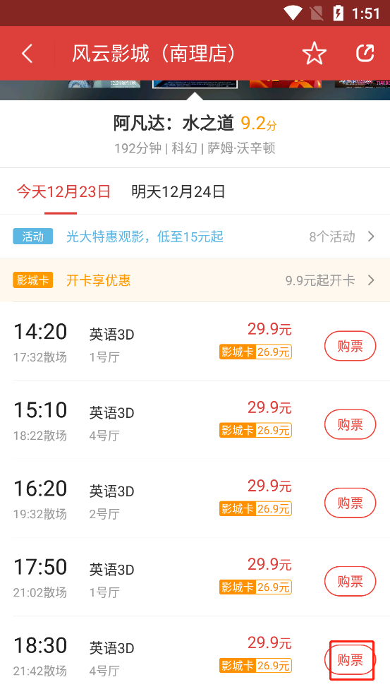 1.实时显示影院座位图,支持在线选座、购票,操作便捷,提升观影体验。