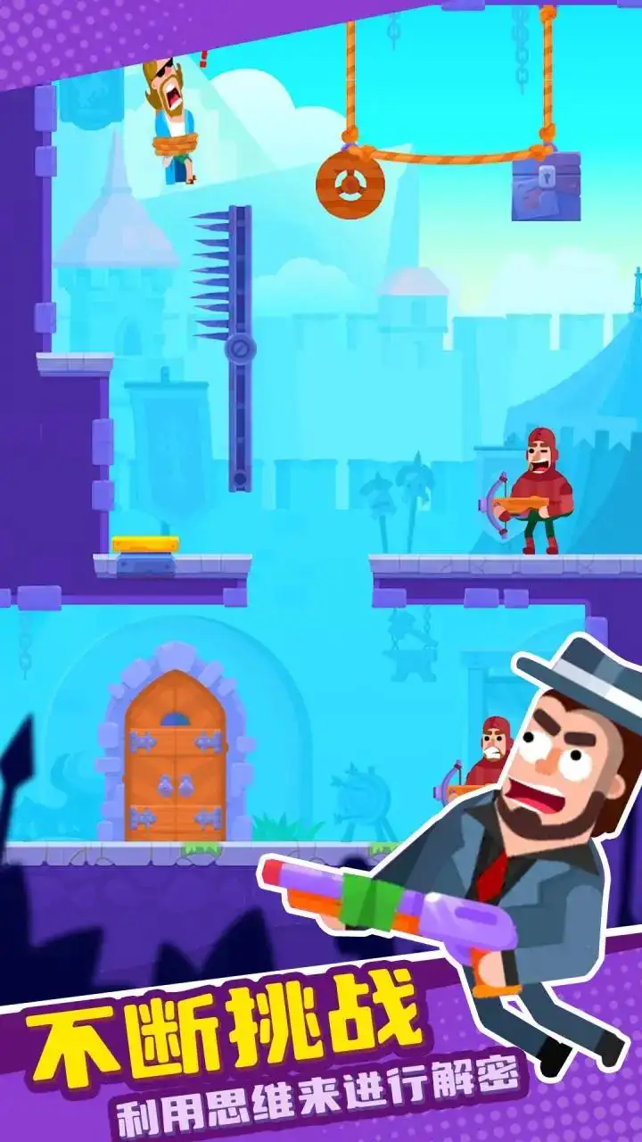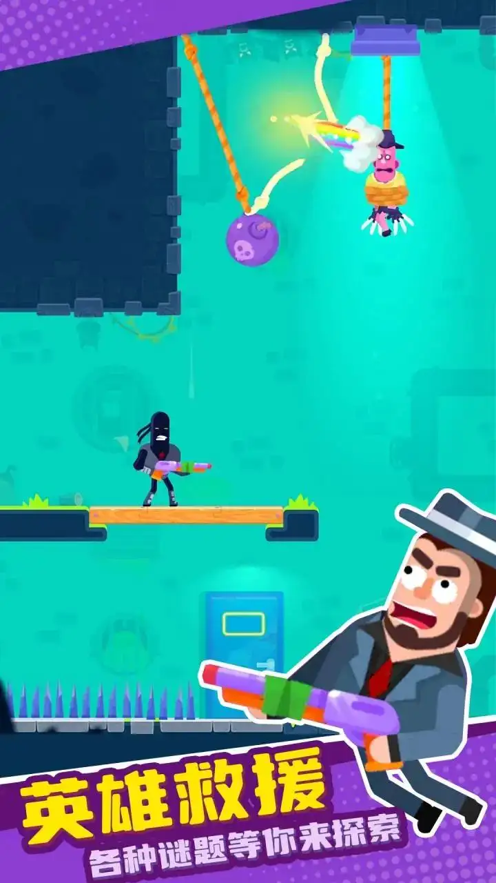 下载拯救大师中玩家在不同关卡中将面临各种各样的挑战,从而救出被捆绑吊起来的人,玩家可以和各类神将一起去拯救师傅,场景中会有各种各样的机关设计,玩家需要在游戏中不断的挑战新的谜题设计,多样的难题让玩家的冒险之路充满惊喜,玩家的主要任务就是按照正确的顺序割断绳子。