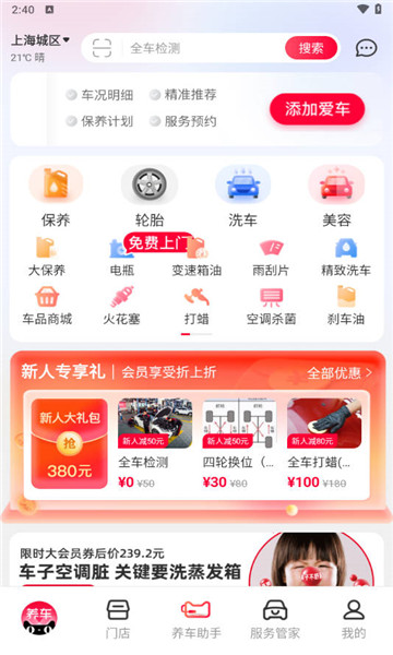 3、提供一站式综合养车服务,无论是基本的洗车、美容护理,还是更换轮胎等需求,都能迅速解决。