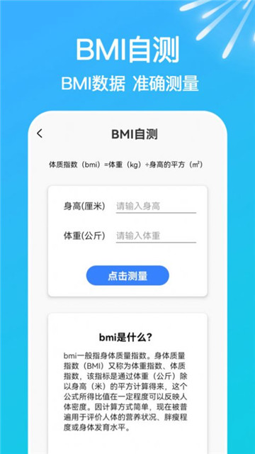 1、可以进行BIM的自我测试,非常方便的记录下你的身体状况。