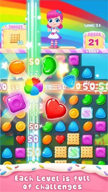 3、你要利用自己的聪明才智与技能消灭掉所有的糖果,并通过各种考验来获得胜利。