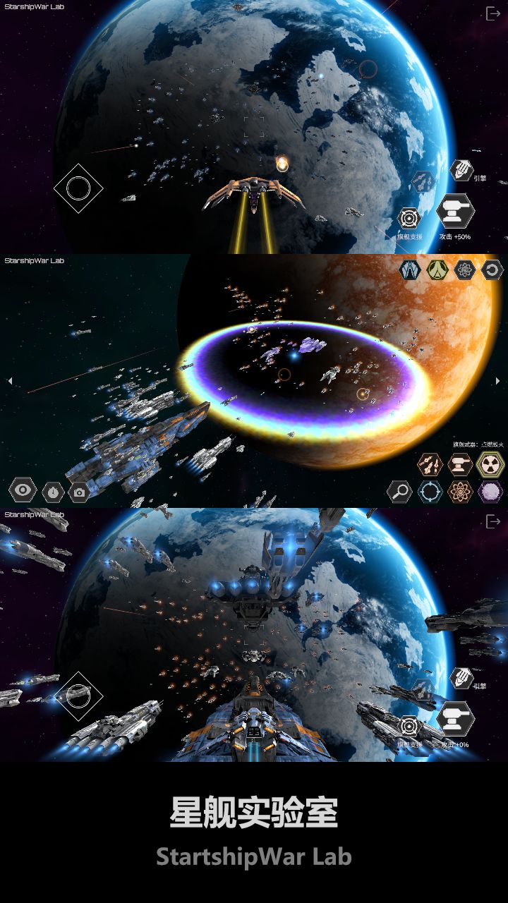 2、在游戏中玩家可以以上帝视角掌控全局,指挥舰队发射各类武器,展开紧张激烈的对战。