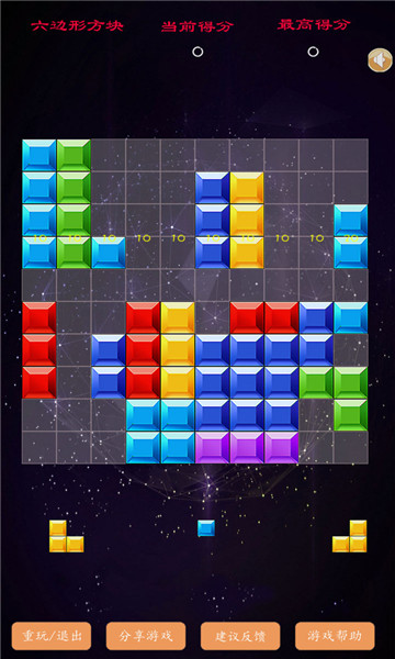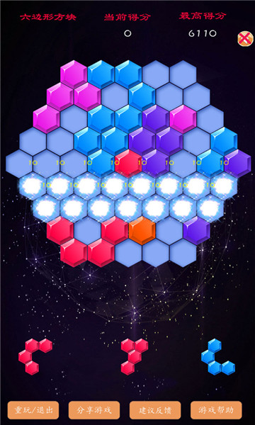 下载六边形百变方块是一款十分有趣的休闲益智类游戏,游戏中超多精彩的关卡等你来挑战,每一次体验都能感受到其中的乐趣,非常适合打发无聊的闲暇时光,努力完成消除任务,顺利提高自己的分数,解锁下一关卡。