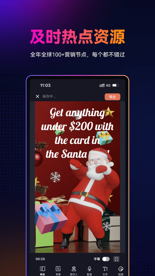 2. 一键式操作:简化视频制作流程,提供一键应用模板、智能剪辑、自动配音等便捷功能。