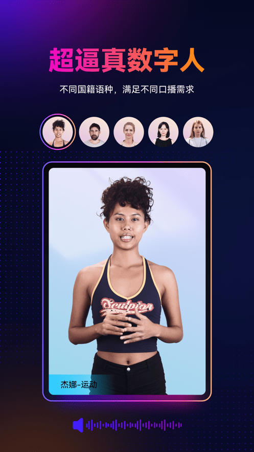 3. 个性化定制:内置丰富数字人角色、多元化模板、多语言配音选项,满足用户个性化创作需求。