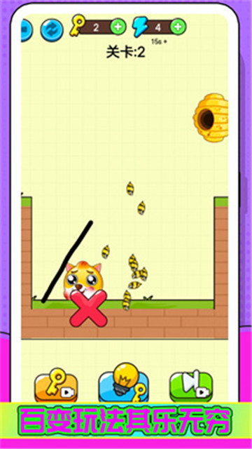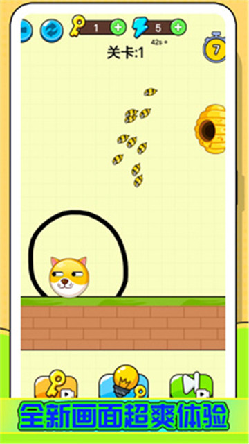 4、在游戏里挑战智慧和反应能力,通过画线保护狗头避开蜜蜂的攻击。