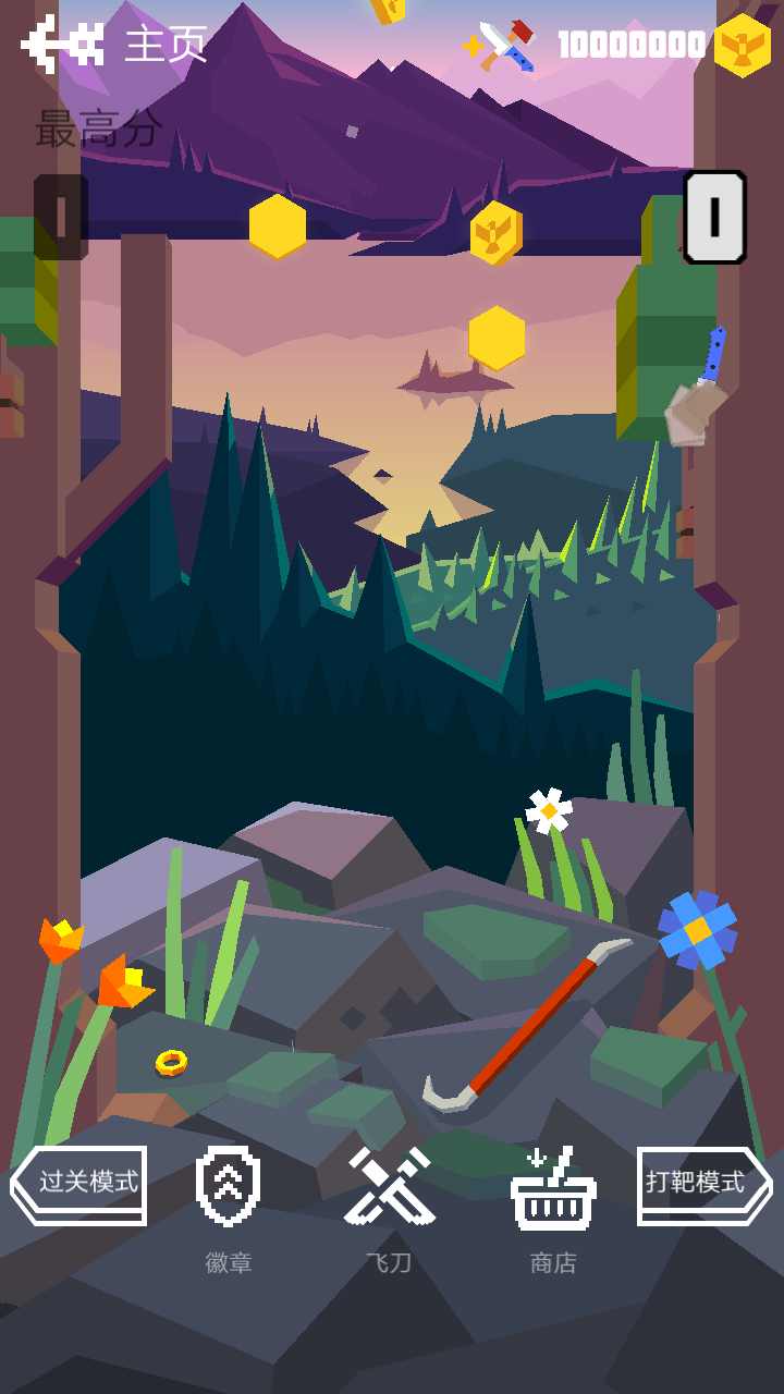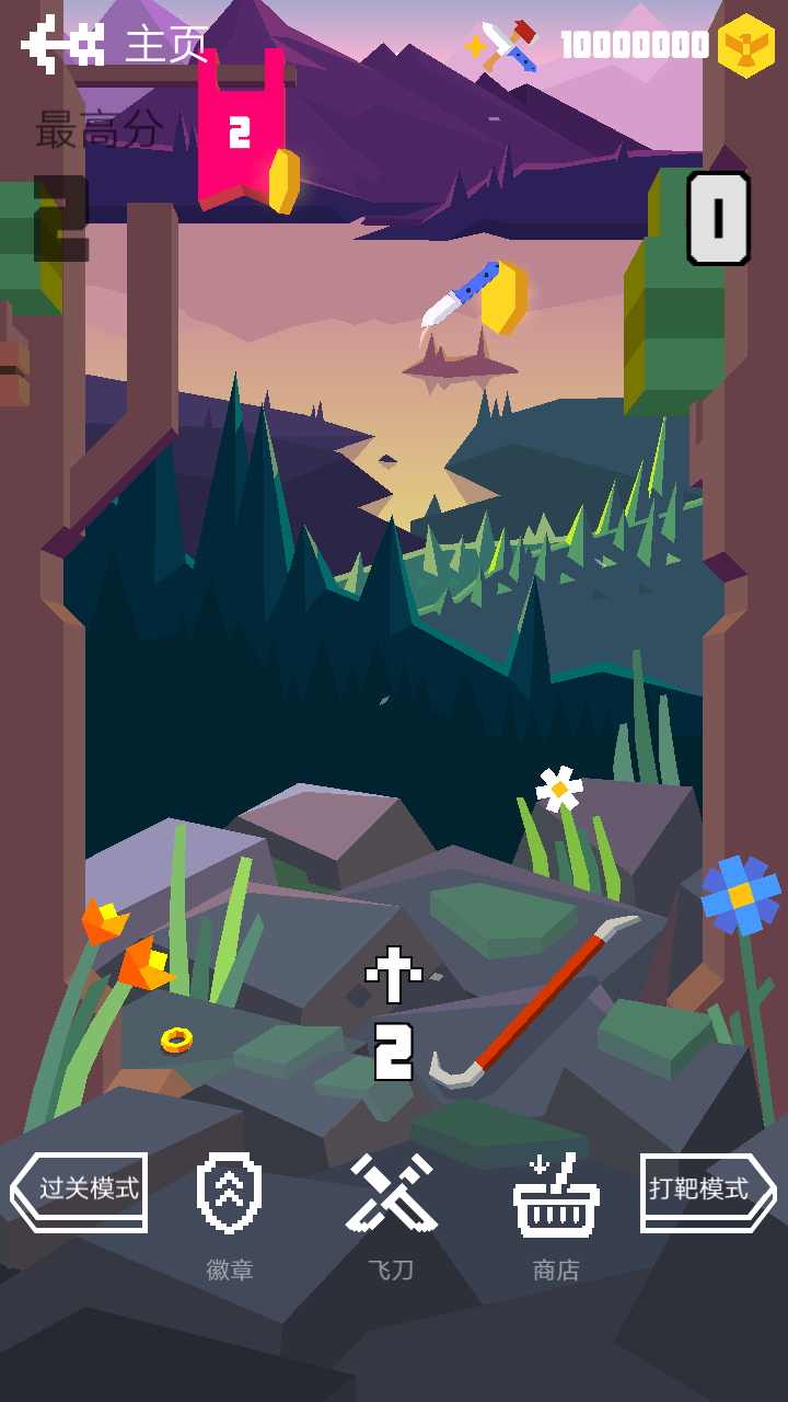 1、玩家可以通过积累金币,在商店解锁并购买更强大的飞刀,增添游戏动力。