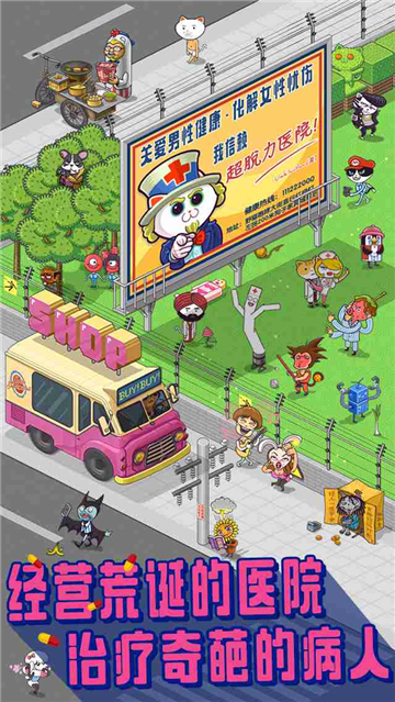 下载超脱力医院是一个模拟医院运营游戏,在这家医院里面有很多神奇的患者,他们患有各种有奇怪的病症,有自拍成瘾,有网购成瘾,有拖延症,玩家在游戏中可以不断扩大自己的医院规模,使用各种道具,把医院带到业界顶端。