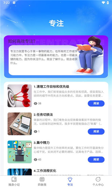 1、进行个性化笔记记录,每位用户都能获得专注力的提升,并能依据个人喜好自由定制记录方式。