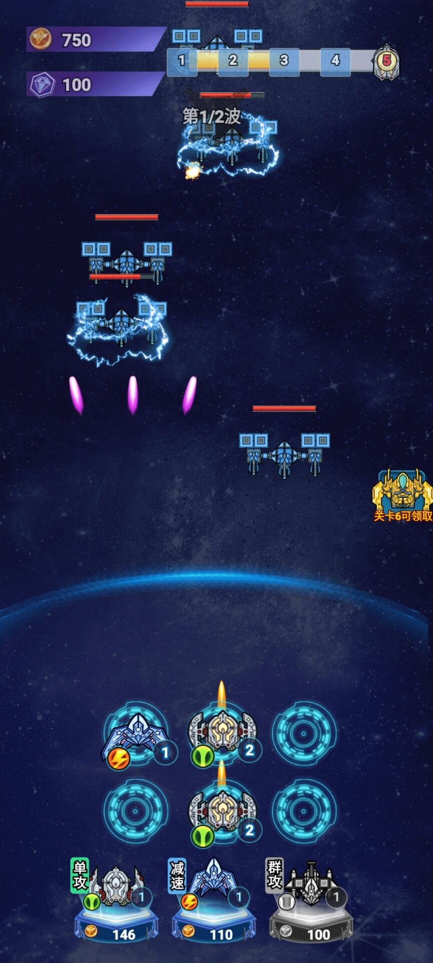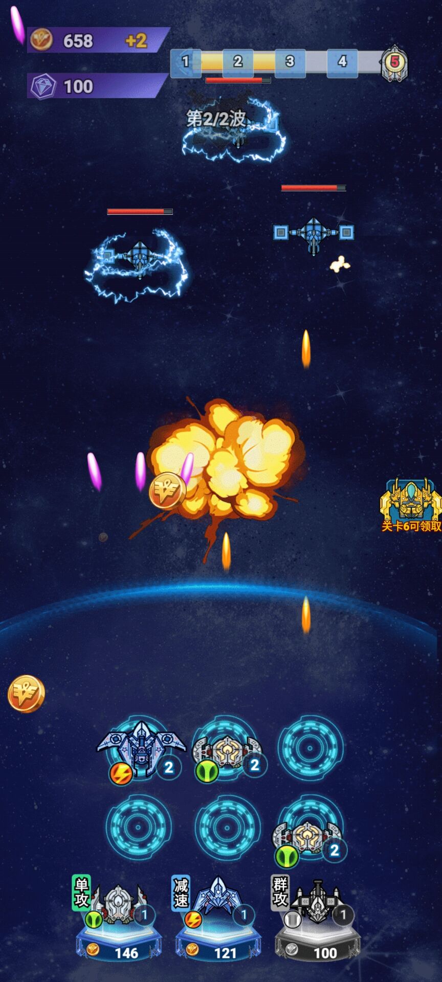 4.、游戏玩法可以轻松上手,享受手指操纵战机的乐趣,歼灭敌机后可以赢取丰厚奖励。