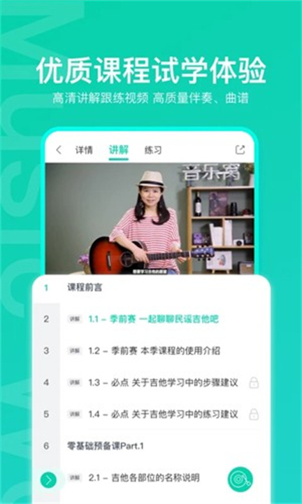 1. 专业音乐课程:提供涵盖各类乐器、声乐、乐理、编曲等领域的在线课程,由知名音乐教育机构与专业教师授课。