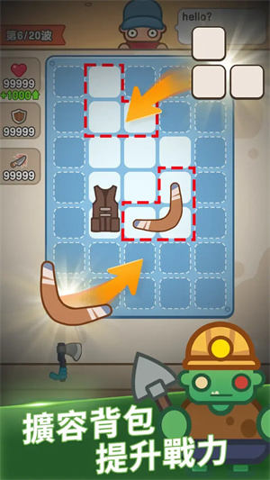 5、随着游戏进展,你将解锁更多格子,可以放入更多种类的武器,打造强力装备来应对更大的挑战。