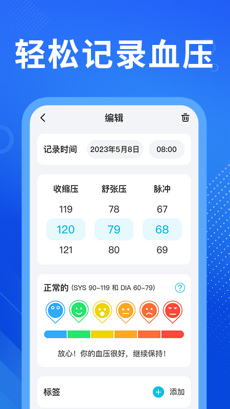 下载1. 精准血压监测:支持智能血压计自动同步数据,也可手动记录,确保血压测量结果准确无误。
