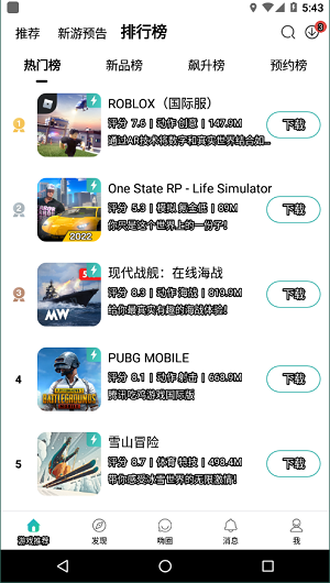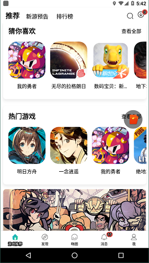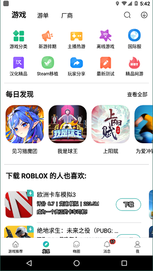 3、强大的游戏社区,发现栏目中可以给你推送大量近期比较火爆的手游来下载。