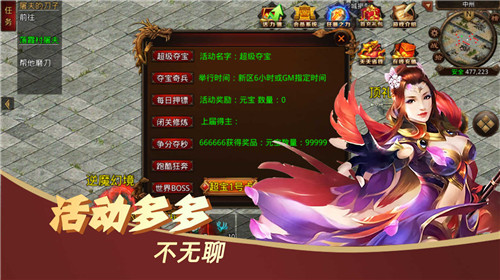 1、玩家上线就有丰厚的福利、装备等你来领取,超高的爆率和攻速,神装轻松爆满地。