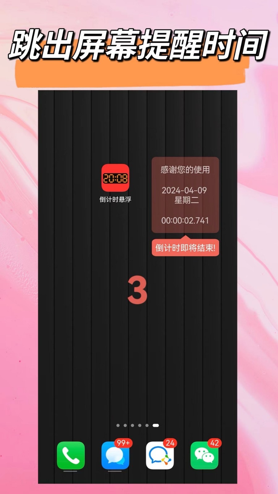 下载1. 悬浮倒计时:独创的悬浮窗口显示倒计时,即使在全屏操作其他应用时,重要事件的剩余时间仍一目了然。