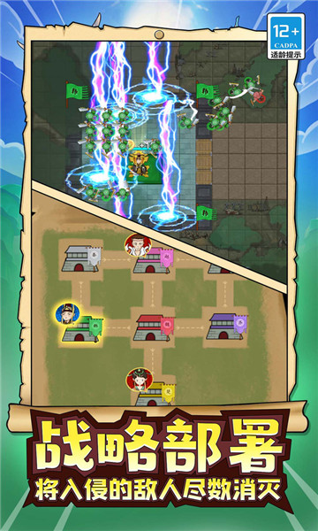 2、快速训练士兵,搭配你的阵容,利用战略部署将所有入侵的敌人全都消灭掉。