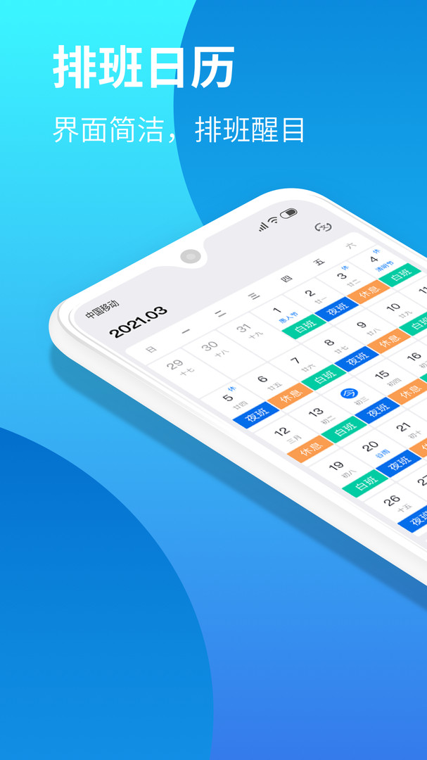 排班助手支持多种班次类型,用户可以自由创建和修改班次,设置包括白班、夜班、早班、晚班等,并可以自定义班次颜色、工作时间和休息时间。还支持为不同班次设置多重提醒,避免因忘记班次而错过工作。