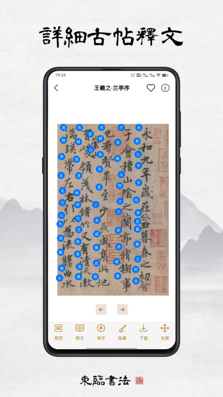 2. 海量碑帖库:集成大量高清碑帖资源,支持缩放、局部查看、对比临摹等功能,方便用户深入研习。