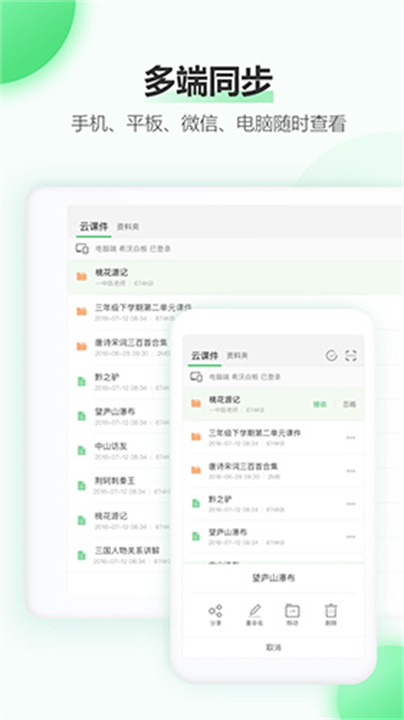 3. 教学资源:内置海量教学资源库,涵盖各学科、各版本教材,支持云端同步与个性化收藏,助力教师备课。