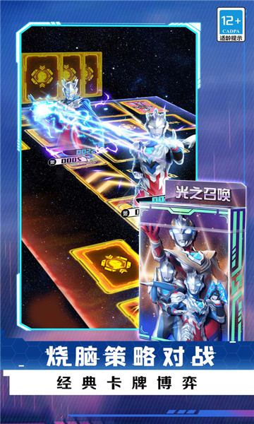 2、独创以奥特曼为题材的卡牌对战玩法,策略烧脑。