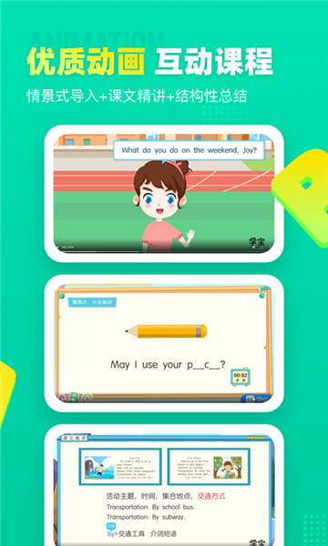 1、采用动画、游戏、故事等形式,将英语学习融入趣味横生的互动环节中。