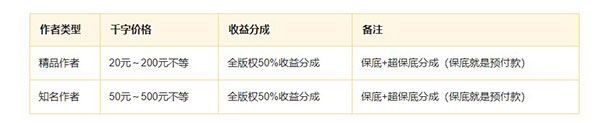1、千字价格及收益分成
