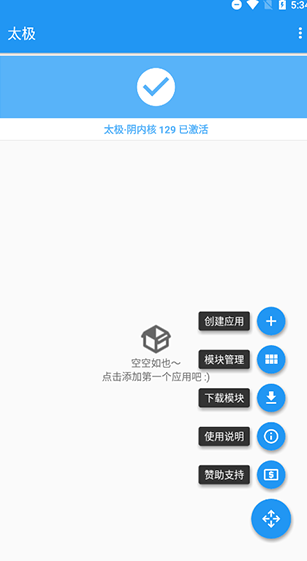2、安装完成后,打开应用,确保界面上显示“太极内核已激活”,这表示应用正常工作。