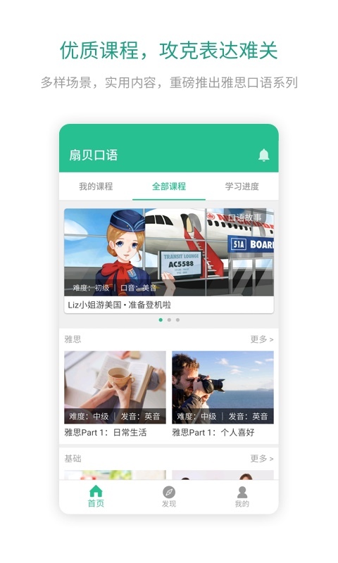 随时随地学习:支持离线下载,用户可以在任何时间、任何地点通过手机进行学习,充分利用碎片化时间提升口语水平。