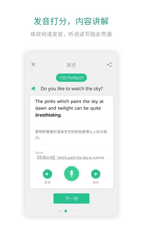 扇贝口语通过逐句跟读功能,提供原声录音帮助用户模仿标准发音。每次发音后,应用会给出实时评分并指出发音问题,帮助用户逐步纠正发音错误。
