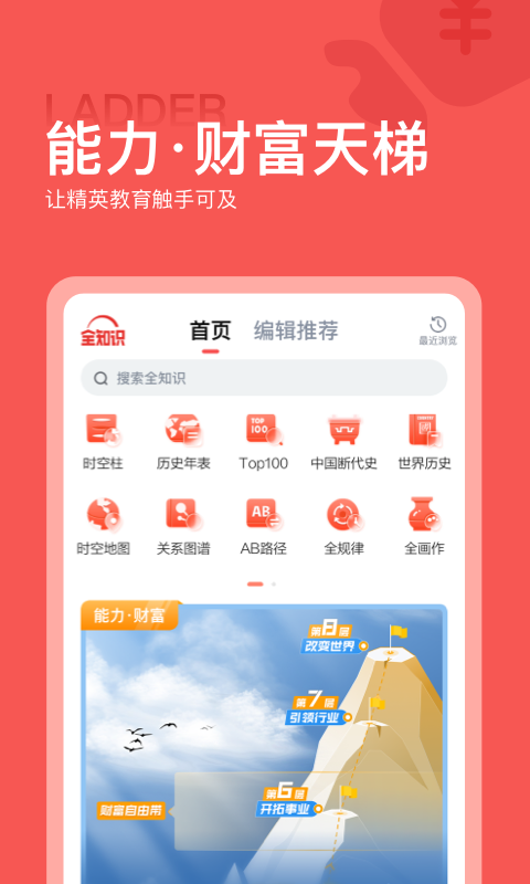 下载全知识app支持个性化推荐和智能学习规划,帮助用户更高效地吸收知识,满足多元化的学习需求。通过创新的功能,如时间轴、时空地图、关系图谱等,用户能够深入了解全球历史的演变与人物之间的关系。
