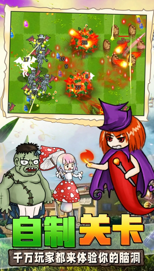 3、耳熟能详的花园战场,唤起玩家的亲切感,让玩家可以全情投入这场奇幻对抗。
